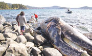 一条灰鲸在卑诗公园搁浅死亡﹐不少游客好奇心起﹐切割鲸须﹑鱼皮和肉当作纪念品带走。渔业部周六派人埋葬鲸鱼尸体﹐2年后起出骸骨作为科研用途。