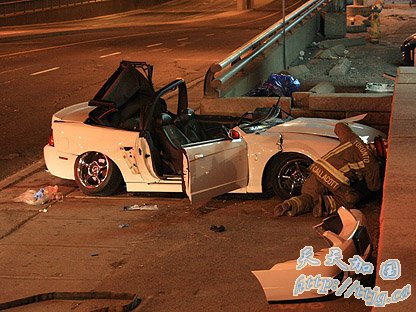 一辆福特Mustang汽车在Keele Street东侧的Finch Avenue上撞上路边护墙。警方约于凌晨12点半前接到报警赶至现场。