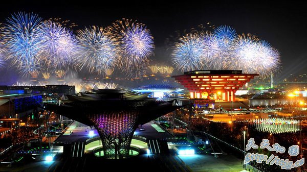 上海世博会开幕式大型灯光喷泉焰火表演在上海举行