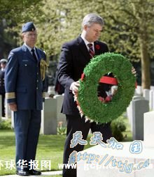【环球华报讯】联邦总理哈珀(Stephen Harper)目前正在荷兰访问,昨天(6日)参加荷兰解放65周年纪念仪式,并向当时牺牲的加拿大军人致祭,敬献花环。