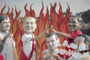 据加通社综合报道,该些巨型人形纸板是示威人士在多次G8峰会举行期间进行抗议活动时采用的道具。