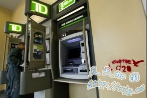 多伦多市区数间银行及自动柜员机,一夜之间被喷上了反G20的标语,连警车也遭了殃。一名男子因此涂鸦而面临恶作剧控罪。