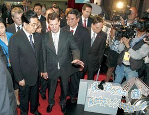 参观前,胡锦涛会见了印度尼西亚总统苏西洛。