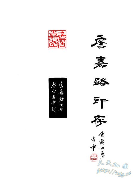古中指出这方印章的艺术特点是:线条平和,柔中有刚;佈局稳健,相互兼顾;“詹”字作接天立地状,“嘉路”两字腾势灵动;三个字横线与边线相互联繫,给人一种庄严和睦、团结向上的艺术感觉。