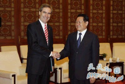 叶礼庭还北京会见了中央政法委书记周永康,他还将会见其它政府官员,包括全国人大外交委员会常务副主任、加中议会协会中方主席郑斯林、中国外交部长、中国投资公司主席、中央对外联络部部长王家瑞及副部长刘结一等,随后前往上海继续访问。