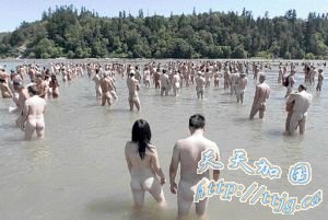 据加通社综合报道,这次新颖的活动在温哥华的Wreck Beach海滩举行,目的是要尝试创下同一时间有最多天体人士畅泳的纪录。中午12时一到,人人争先恐后,一丝不挂,便往水里跑,一时间,水花四溅。