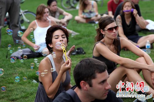 数百名携带吹气泡用品的抗议者17日正午时分在多伦多皇后公园里同时吹出气泡,以表达对“气泡警官”乔瑟夫斯愤怒,以及对G20峰会期间警方行为的公众调查的支持。