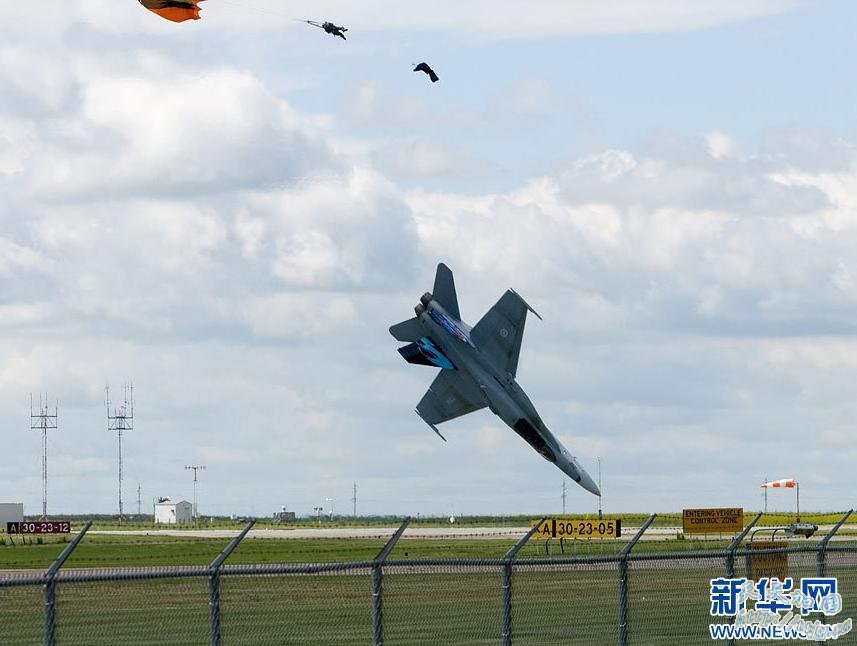 加拿大一架F-18战斗机23日在西部阿尔伯塔省的莱斯布里奇机场坠毁,飞行员成功跳伞幸免于难。
