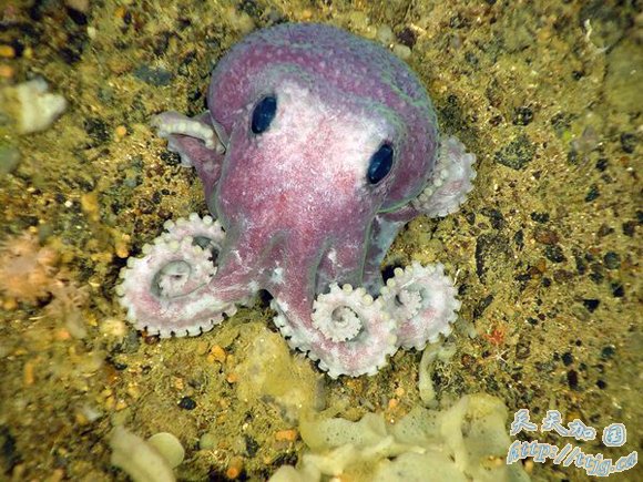 1、此次发现的11种深海新物种之一——可爱的紫色章鱼。