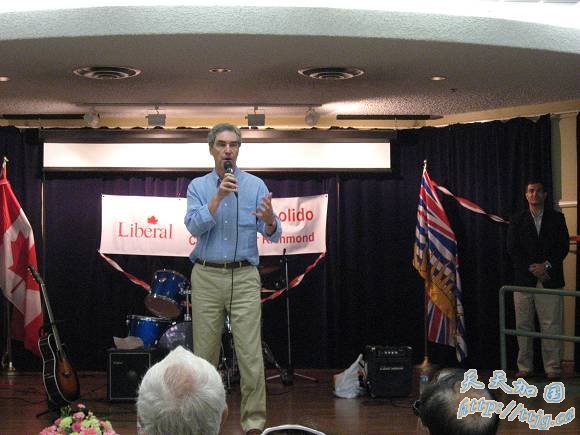 叶礼庭在列治文自由党国会议员候选人苏立道的活动上讲话。 张帆 摄