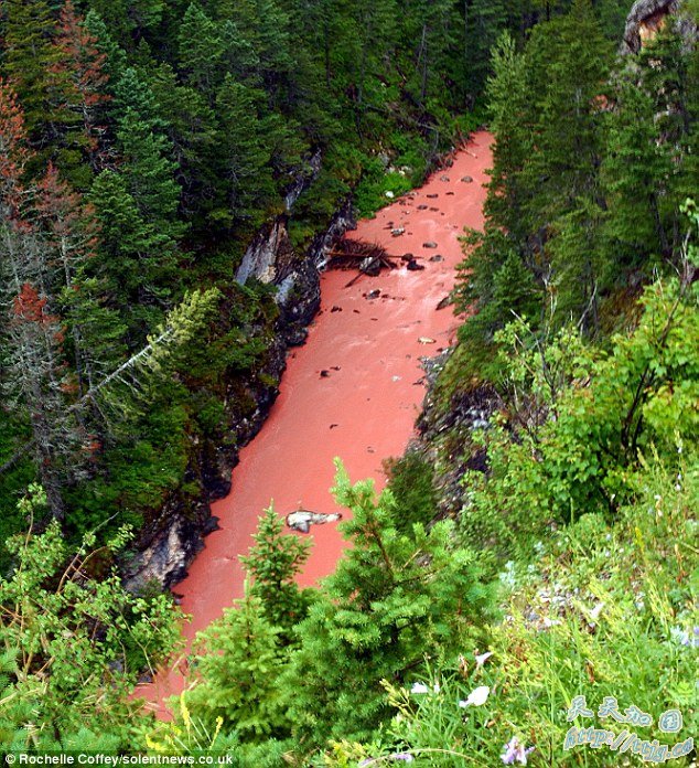瀑布变红是水冲刷出一种红色沉淀物产生的。瀑布所在的沃特顿湖有很多古老的红色沉积岩,这些岩石延伸自落基山脉并可追溯到15亿年前。罗谢尔说:“当天早些时候下了一场很大的暴雨,足以把那些沉积岩上的红色物质冲刷下来。”