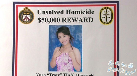 多伦多警方今晨召开新闻会,悬赏$50,000缉拿杀害华裔女子田园(Yuan (Tracy) Tian;下图)的凶手;警方说,任何人若能提供线索令警方抓到杀人凶手,即可获得这笔悬赏金。