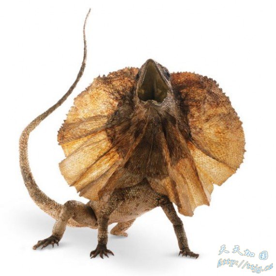 这种伞蜥蜴发现于巴布亚新几内亚和澳大利亚北部地区。它们拥有巨大的雨伞形状的颈部薄膜。当求偶或受威胁时,这种颈部薄膜会张开,伸展到最大,可以对敌人起到威慑作用。