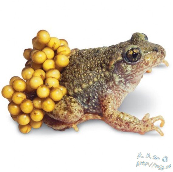 在这只雄性蟾蜍接生员身上,背着许多刚刚产出的蟾蜍卵。它的责任就是保护这些蟾蜍卵不被其他捕食者吃掉。