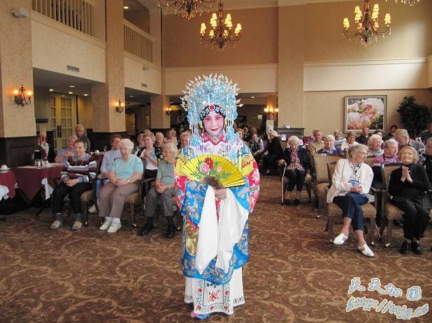 10月8日,在高贵林一个社区的精彩表演受到老人们的热烈欢迎。虽然他们听不懂唱词,但精美的表演和传统京剧优美的唱腔配以陈佩琼流利的英文翻译使到场的观众深深地感悟到京剧这一传统艺术的无比魅力。