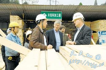 由卑诗省林木厅长毕贝尔率领的访华贸易代表团,周六参观了位于上海市的一个木结构建筑地盘。该处将兴建三幢廉价房,也是上海市最大型廉价房小区的心脏地带。