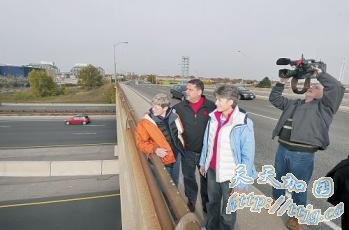 与此同时,在桥底下面的嘉甸拿高速公路,勒米尔(Jean-Luc Lemire)及他的妻子将汽车停下,紧张地看着该名正从桥梁栏杆逐步逐步滑下的女子。勒米尔表示:「所有人均打开车窗及高声呼叫:不要跳下,不要跳下。」