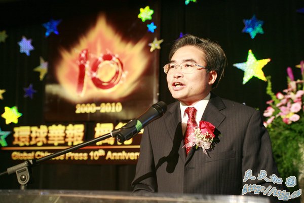环球华报社长张雁在庆典上致辞。 中国驻温哥华总领事梁梳根在庆典上致辞。 国会议员黄...
