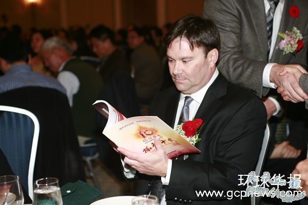 国会议员戴伟思阅读《环球华报十周年纪念专刊》。