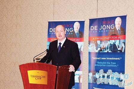 他尤其对卑诗木材在中国市场的发展予以肯定,並称应再接再厉,继续开拓亚洲其他国家市场,如印度等。面对17亿元財政赤字,政府首要任务是重建省民信任,增加政府用款透明度,採取系列措施减少政府开支,促进经济发展。要平衡预算,卑诗经济发展才会有崭新的开始。省长等执政者要清楚自己最该做什麼,需要怎麼做,再动员省民、企业配合,才能在保证卑诗经济持续健康发展的同时,亦能保证省內的健康、教育等服务。