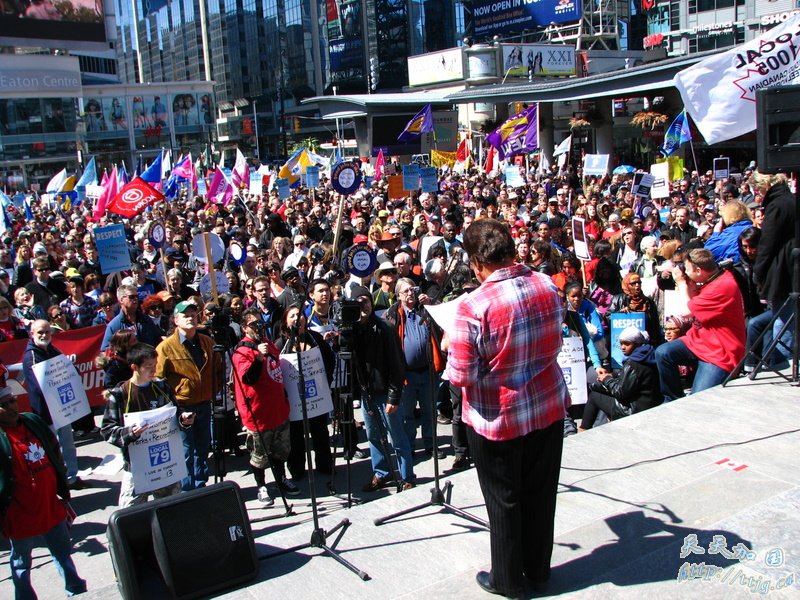 这次的示威和集会高达5000多人参加,很大的原因是得到工会的支持。代表TTC员工的联合运输工会(Amalgamated Transit Union)113分会、代表本市垃圾收集工人的加拿大公共雇员工会(CUPE)416分会、多伦多及约克区劳工议会(Toronto and York Region Labour Council)、安省劳工联合会等工人组织都派人参加。