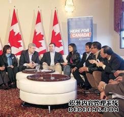 哈珀周六早上与大温族裔媒体代表召开1小时圆桌会议,接受每家传媒提出一条问题;他在会上讲述主题之一,就是强调保守党今次致力争取成为大多数政府,以巩固现有经济成果。
