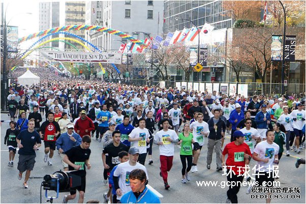 今年的参加人数共有49,346人,虽然气象预报可能会下雨,但所幸天公仍然愿意为这项年度盛事造美,星期日上午7点钟开始,近5万个参赛者陆陆续续抵达乔治亚街(Georgia Street)的温哥华酒店(Hotel Vancouver)门外,准备起跑。
