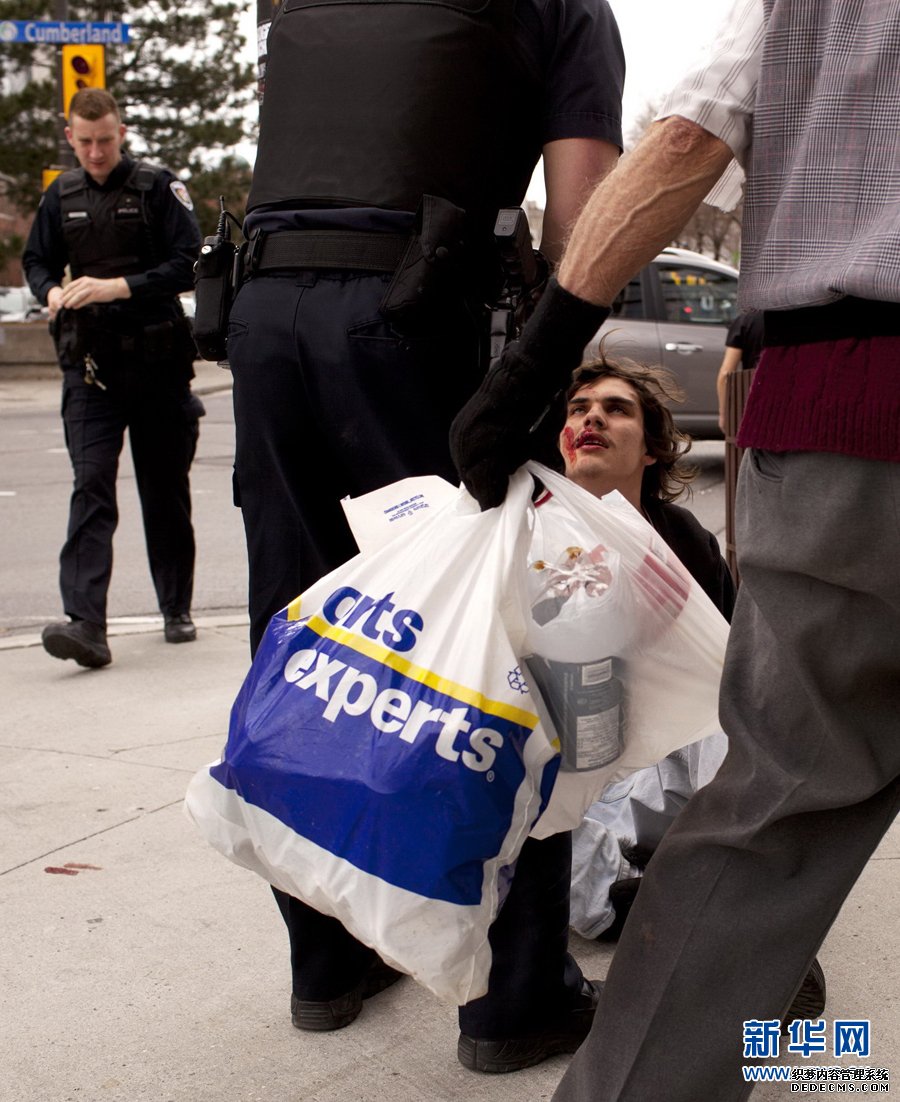 (责任编辑:小芬)4月25日,加拿大首都渥太华市警察在闹市区大街上抓获一名从政府酒类专营店偷了一瓶酒...