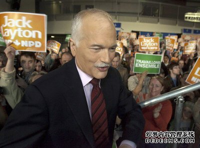 新民主党声势急升,党魁林顿25日在毗邻首都渥太华的魁省盖堤诺市造势,在支持者簇拥下,欣喜之情溢于言表。(加通社)
