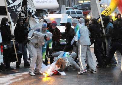 昨晨8点左右,当1名28岁女子手擎冬奥火炬从安省的密尔顿(Milton)进入贵湖(Guelph)地段、转过一个拐角时,与一群愤怒的示威者相遇,示威者先用语言挑衅圣火...