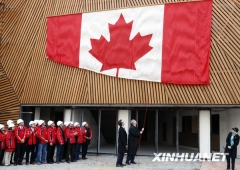 12月5日,加拿大总理哈珀在中国2010年上海世博会加拿大馆参观。这是哈珀为加拿大馆揭幕。...
