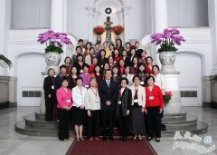 马英九(前中)接见与会的会员作家並合影留念。 【环球华报讯】11月在台北举行的海外华文女作家协会(简称女作协)双年会圆满闭幕,来自全球的一百多名会员作家...