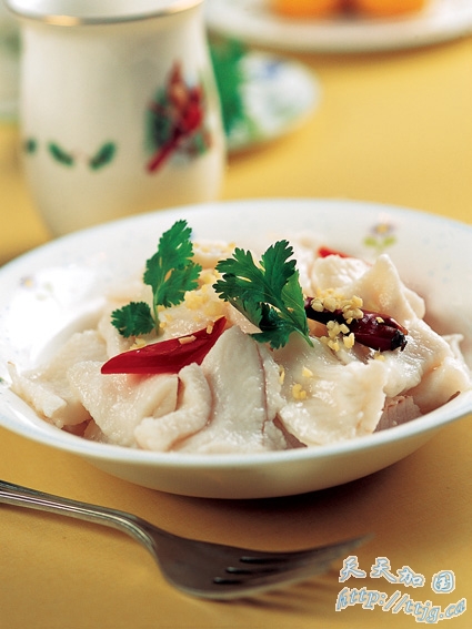 3.将鱼宰杀洗净,把鱼肉切成片,放入沸水中氽熟,捞出
