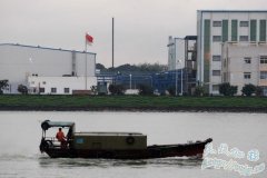 一条小船经过发生气体泄漏工厂前的江面,船夫在观望厂区情况。 进入发生气体泄漏的厂区前,保安在路口把守禁止无关人员入内。 事态控制住以后,外出躲避的村民...
