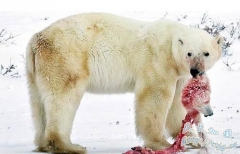 气候变化导致北极熊同类相食 一只雄性北极熊叼着一只小北极熊的头部 英国《泰晤士报》报道,环保人士称,由于气候变暖,北极熊的生存和狩猎的冰盖面积日益缩减...