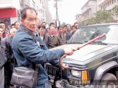 老人称被汽车惊吓 拦车5小时要车主跪地道歉(图)