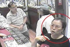 首名进入珠宝店企图以假卡购买首饰不遂的女疑匪(红圈者)。 第二名女疑匪(黑圈者)怀疑进入珠宝店内为同党解围,并涉嫌以假身份证及假卡购下首饰。 约克区灭罪热...