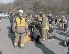 女司机被送院救治 涉及事件的佳士拿房车 坠崖落入河中的汽车 怡陶碧谷昨晨发生疑因「路火」(Road rage)引起的交通意外。两辆汽车发生轻微碰撞后以时速90公里追...