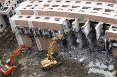 8月5日,工程车辆正在拆除倒覆楼房的外墙面。8月5日,上海市闵行区莲花河畔景苑倒覆楼房开始拆除,整个拆除工作预计一周左右完成,之后,万科房地产有限公司将作为第三方托管未倒覆楼房的后续建设。新华社记者 裴鑫摄 点击查看 高清现场图集 8月5日,工程车...