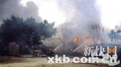 ■黑烟弥漫,消防员正全力扑救。 ■工厂大部分成了废墟。 ■被消防员抢救出来的油罐车。 新快报9月12日报道 昨日下午近3时20分,位于江门鹤山市杰洲村的远翔燃料有限公司突发爆炸燃烧事故,占地约2000平方米的公司一大半陷入火海,公司内存有20多个大小油罐...