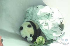 被救的大熊猫正在睡觉 成都商报9月14日报道 12日,(雅安市)宝兴县夹金山离公路10多米高悬崖处发现一只大熊猫,当时大熊猫随时都有掉下的危险。为防止大熊猫掉下受伤,在此施工的农民工们当即展开援助行动,他们拿出床单、棉絮等搭成床垫,后又想了不少办法,...