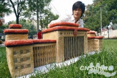 图为8月31日,黄鑫展示作品人民大会堂。 图为8月31日,黄鑫展示作品。 为迎接新中国60华诞,四川青年理发师黄鑫历时3个多月、用5.5公斤碎头发制作了一个微型人民大会堂,与之前制作完成的人民英雄纪念碑、天安门等组成一个头发丝版天安门广场景观缩影。...