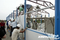 8月20日,大陆援助台湾台风莫拉克灾区的首批活动板房已运抵受灾严重的屏东县佳冬乡,当地工作人员已开始试装工作。新华社发 8月20日,大陆援助台湾台风莫拉克灾区的首批活动板房已运抵受灾严重的屏东县佳冬乡,当地工作人员已开始试装工作。...