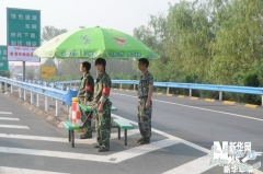 在跨越-2009军演中,济南军区猛虎师通过中原地区发达的高速路网三路并进高速向南突进 图为民兵参与沿途执勤 新华军事记者黎云摄 在跨越-2009军演中,济南军区猛虎师通过中原地区发达的高速路网三路并进高速向南突进 图为临时设在高速路服务区的野战医院 新华...