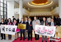 加拿大广西总商会向广西海外联谊会赠送画和书法(由中国著名画家莫华生作)右4为黄道伟部长。 【环球华报讯】1月4日,由会长马海率领的加拿大广西总商会代表团...