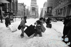纽约一个地铁车站前路面积雪甚厚,游客带行李上街步行艰难。 据香港《文汇报》29日报道,吹袭美国东岸的暴风雪虽已转往加拿大,但纽约市面仍受积雪影响,有地铁...