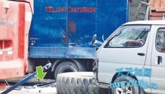 24岁工人何赐豪被弹飞而出的巨型车轮撞至飞向蓝色密斗货车,车斗亦被撞至凹陷,明显留有血渍。图片来源:香港明报 中新网5月17日电 据香港大公报报道,香港发生...