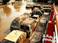 重庆广安洪水退去全面清淤 汽车叠落家具晒街