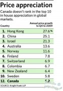 多伦多信息港(记者季翔报道):Frank Knight Frank LLP调查显示,加拿大2009年房价上涨5.2%,在经济处于低迷时期,这个数字相当可观,但与世界其它地区相比却黯...