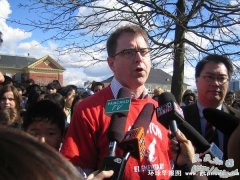 新民主党省议员狄德安谴责自由党省政府罔顾民意,强拆卡尔顿小学校舍。 熊文 摄影 【环球华报记者 熊文报道】本周三(17日),温哥华市东区卡尔顿小学(Sir Guy...